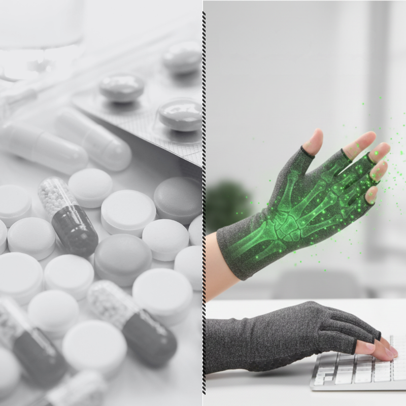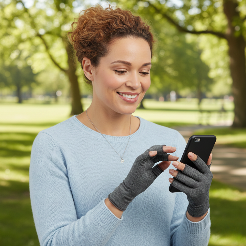 Erlebe sofortige Entlastung bei Arthritis, Sehnenscheidenentzündung und steifen Fingern – mit unseren stützenden Kompressionshandschuhen für den Alltag.
